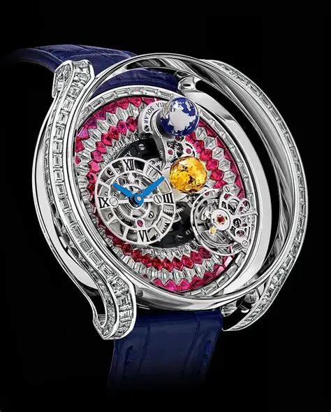 Celestial bodies and space exploration have long driven Jacob Arabo’s creativity. In 2014, he translated his intimate passion into an ambitious timepiece concept. Astronomia is an unheard-of translation of astrophysics into watchmaking form. Astronomia Solar Zodiac is a smaller, deeper and more intensely gem-oriented version of this planetary creation.