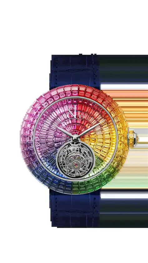 Jacob & Co. exclusively selected the baguette cut. To recreate the smoothest surface, Jacob & Co. only works with the invisible setting technique. No prongs, no metal appears that would break the continuous array of gems. White diamonds. Emeralds. Rubies. Blue, yellow, pink or orange sapphires. Tsavorites. A rainbow color arrangement. Brilliant Flying Tourbillon is Jacob & Co.’s ultimate expression of femininity.