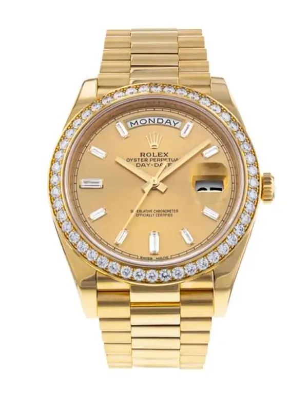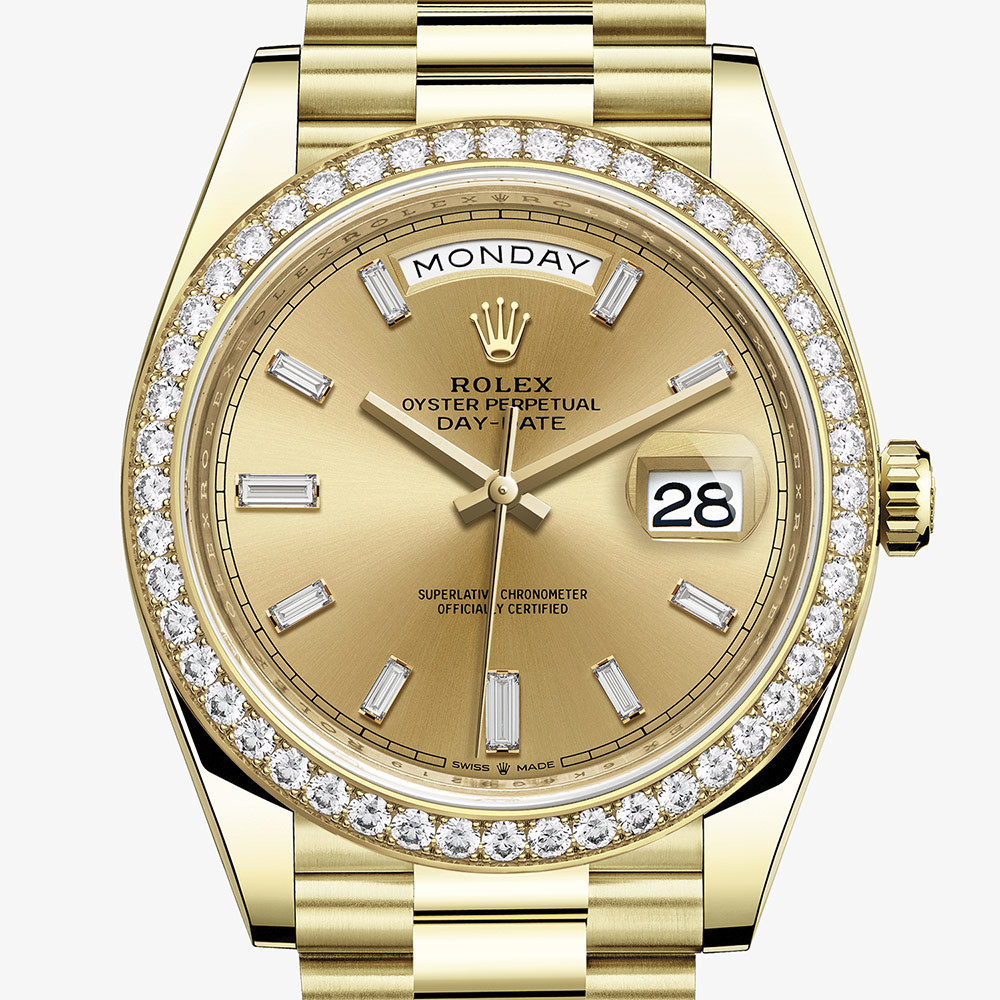 The Day-Date 40 is the epitome of timeless luxury and technical mastery, standing as one of Rolex’s most prestigious timepieces. Introduced in 2015, this model builds upon the legacy of the original Day-Date, launched in 1956—the first wristwatch to display both the date and the full day of the week spelled out in a window on the dial.
